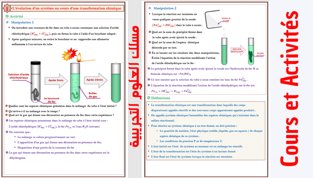 📗 مقرر الفيزياء والكيمياء أولى باكالوريا علوم تجريبية - خيار فرنسي